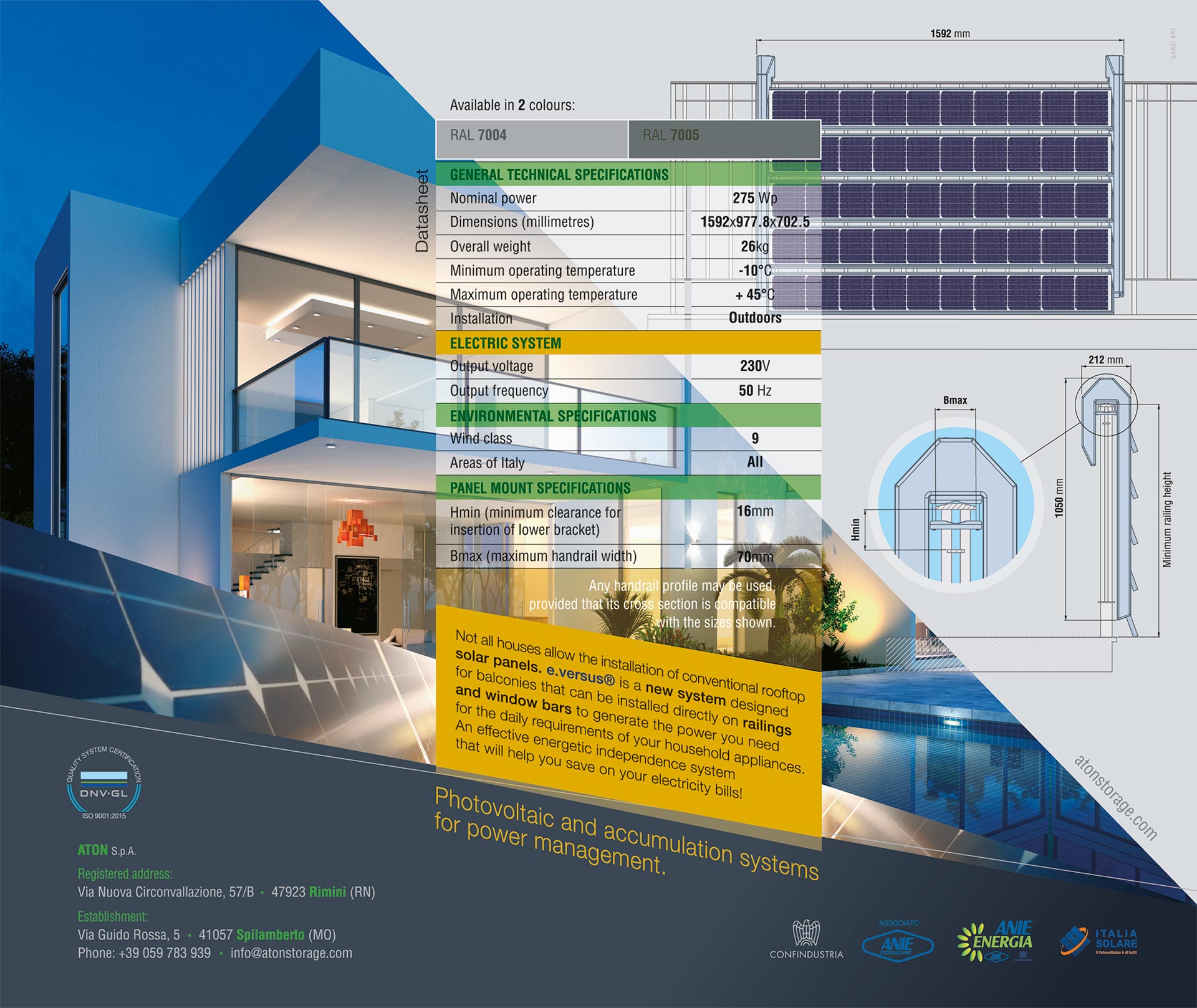 Progettati e realizzati in Italia, facili da installare e disponibili in più colori per adattarsi in modo armonioso ad ogni edificio, i pannelli fotovoltaici e.versus sono la soluzione ideale per ottimizzare l’utilizzo di energia rinnovabile nel settore residenziale, ridurre l’impatto ambientale e fare un primo passo verso l’autosufficienza energetica!